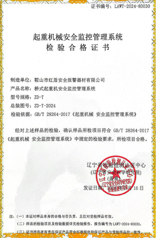我公司研發(fā)生產(chǎn)的安全監(jiān)控管理系統(tǒng),符合國標(biāo)GB/T 28264-2017《起重機(jī)械安全監(jiān)控管理系統(tǒng)》要求,并具有檢驗(yàn)證書。該系統(tǒng)主要監(jiān)測起重機(jī)相關(guān)參數(shù),進(jìn)行運(yùn)行狀態(tài)數(shù)據(jù)匯總、存儲,解讀。根據(jù)現(xiàn)場不同,可以通過無線通信方式把數(shù)據(jù)傳到地面主控中心,由主控中心的軟件進(jìn)行記錄分析。