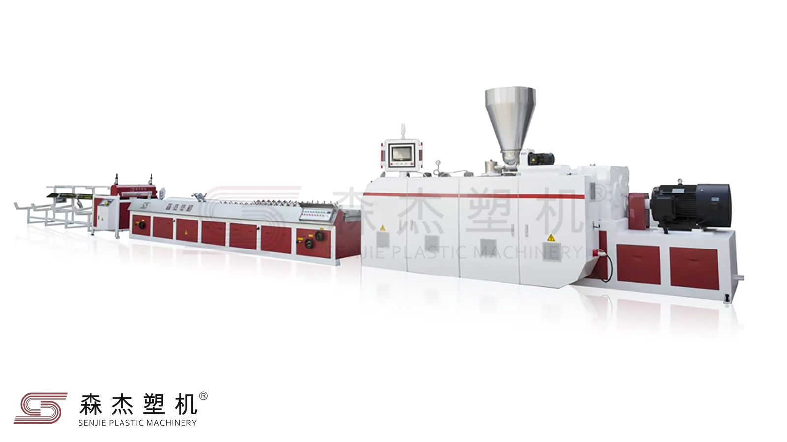 該生產(chǎn)線取塑料和木材的各自優(yōu)點,根據(jù)不同型材斷面及模具,選用不同規(guī)格的錐形雙螺桿擠出機(jī),配置相應(yīng)的定型臺,牽引機(jī),切割機(jī),翻料架等輔助設(shè)備,可一步法或兩步法生產(chǎn)各種PE木塑異型材。該機(jī)組混煉塑化效果好,擠出壓力穩(wěn)定,產(chǎn)量高,節(jié)能降耗,可適應(yīng)高填充量的木粉和其他植物纖維。主要用于包裝箱板,欄桿,步道,戶外桌椅,托盤,地板等裝飾材料,用途十分廣泛。